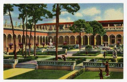 The bronze Roman general, now located in the antelobby of the Museum of Art, was formerly placed in the courtyard alongside other reproduction bronzes and can be seen in the bottom right foreground in this early postcard of the museum (fig. 14).