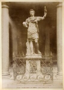 Unlike many of the other pieces on view in the Ringling courtyard, the Roman general (fig 13) was not produced by the Fonderia Chiurazzi in Naples but was likely made by a foundry in Venice – it is probably in Venice where John Ringling purchased it as well, along with other statues and architectural fragments he is known to have acquired there. The circumstances of the bronze’s production and its original context are unknown, although it is possible that it was made around the time the Augusto Grimani was sold, intended as a reminder of the ancient marble sculpture. Whether it was produced for a particular place, perhaps a niche in a Venetian palazzo, or as a piece to be sold from a catalogue of similar reproduction bronzes is also uncertain.