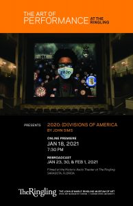 Beginning with the Ringling International Art Festival’s five years of dynamic programming in 2009 and continuing with performances of cutting-edge international artists selected by Ringling curators of performance, The Ringling’s Art of Performance season delivers broad access to diverse and provocative multidisciplinary performing arts that reflect a wide range of experiences, disciplines, and relevant cultural expressions. The program continues its support of the creative process by Florida-based, national and, international performance makers, and engages developmental residencies and research in the Perret Performance Studio.